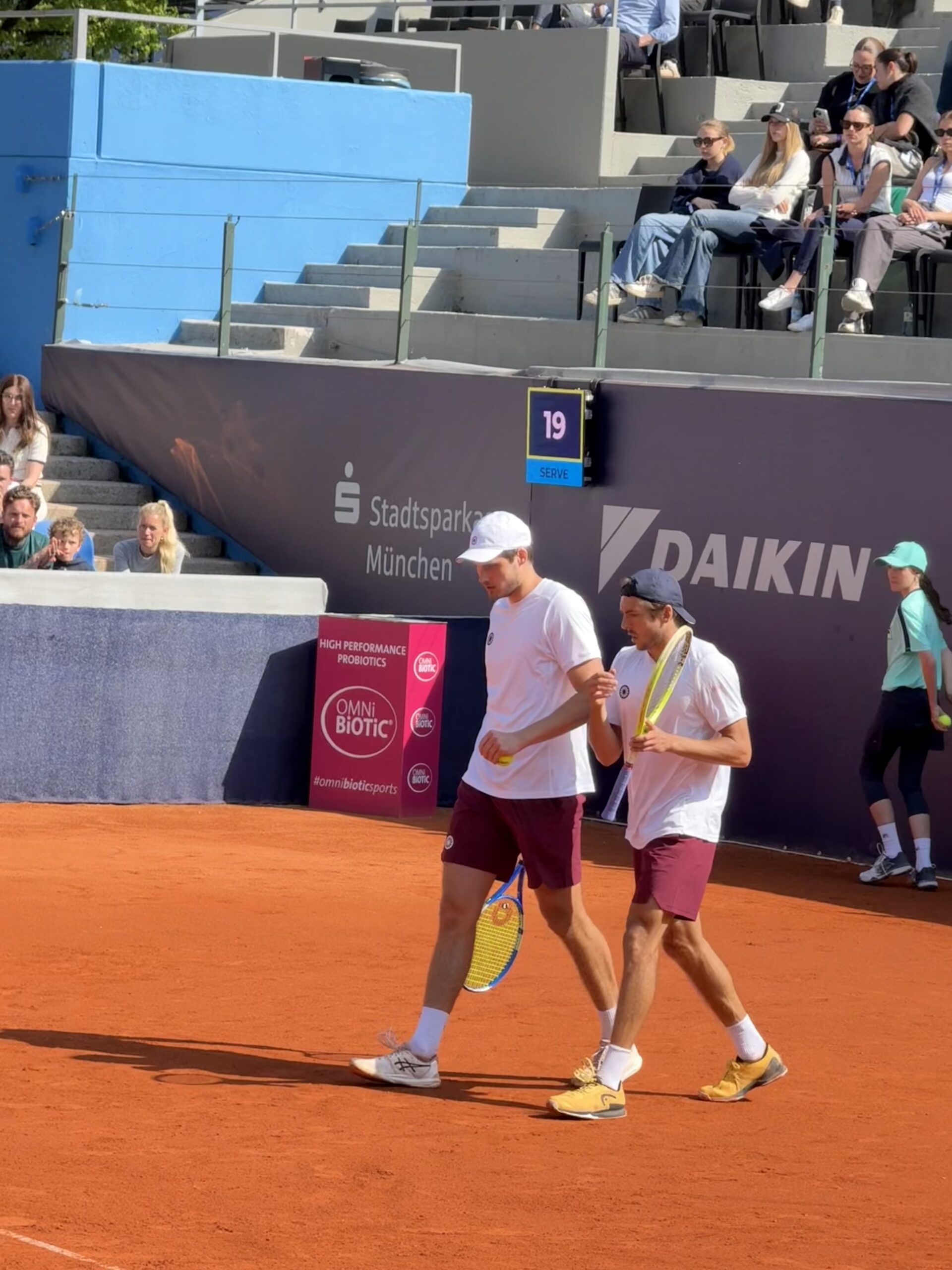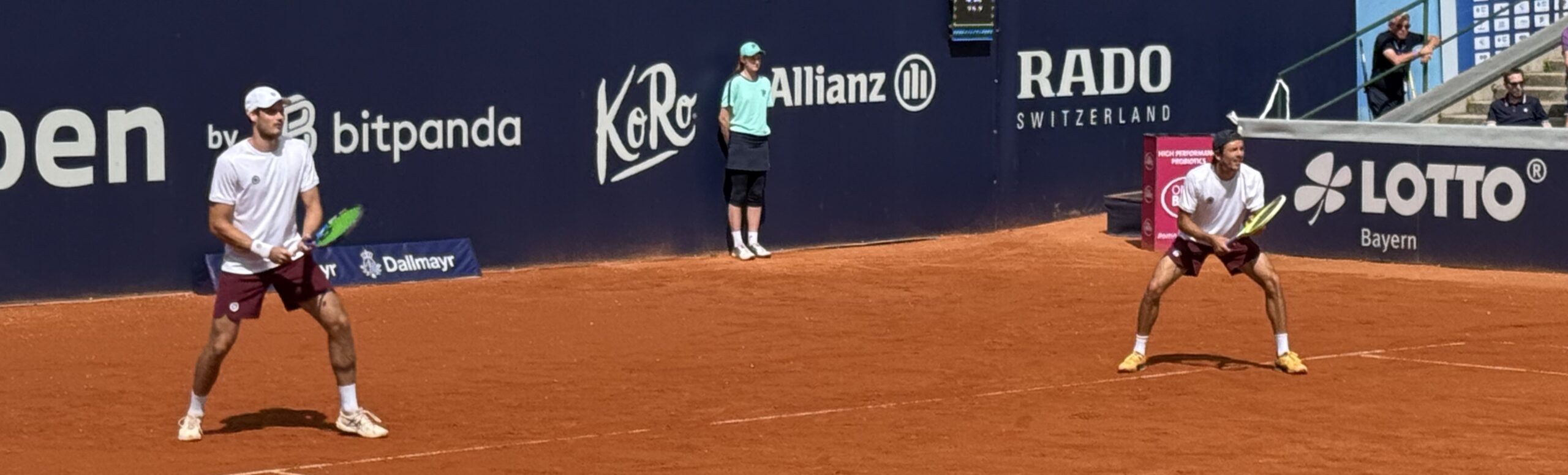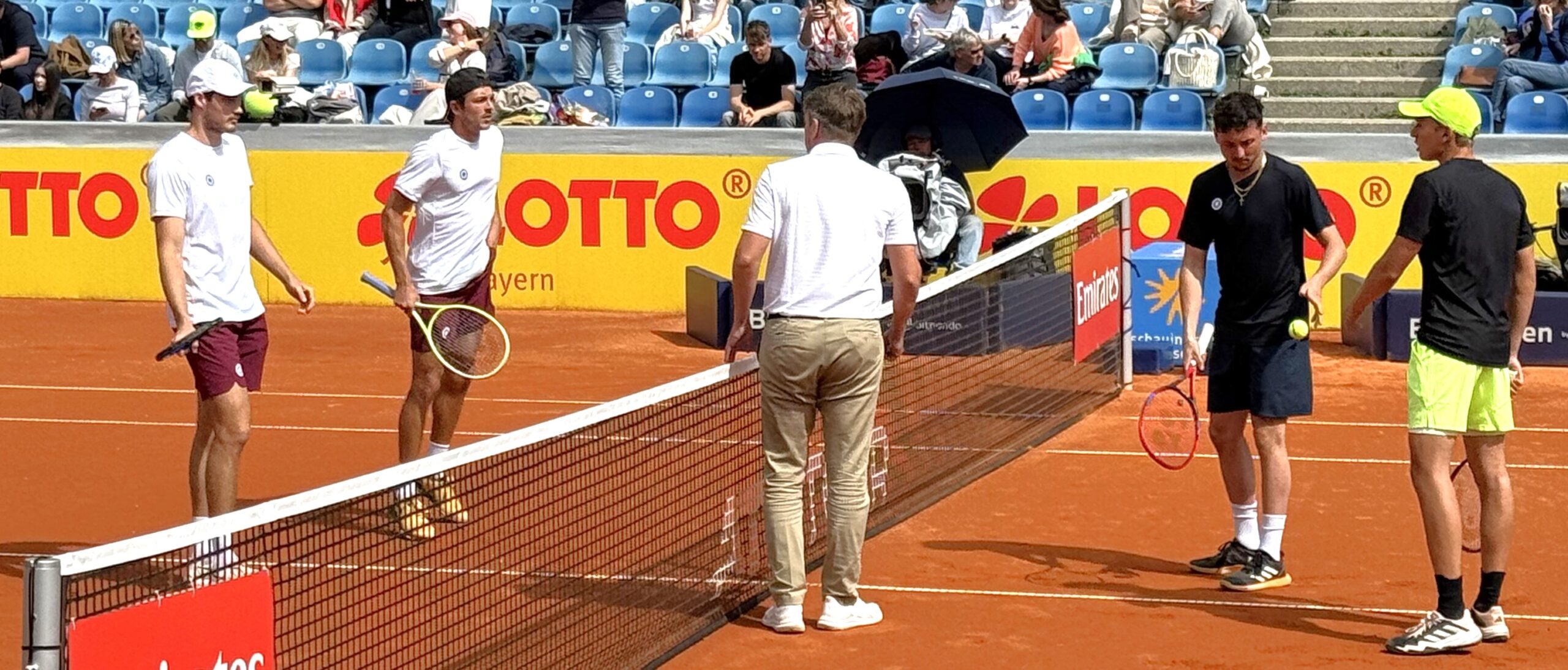 Das deutsche Tennis-Doppel Jakob Schnaitter (29 – rechts im Bild) aus Wasserburg und sein Doppel-Partner Mark Wallner aus München sind bei den BMW Open 2025 in München heute ins Halbfinale eingezogen. Die beiden gewannen gegen Justin Engel und Max Rehberg sicher mit 6:3 und 6:3.
