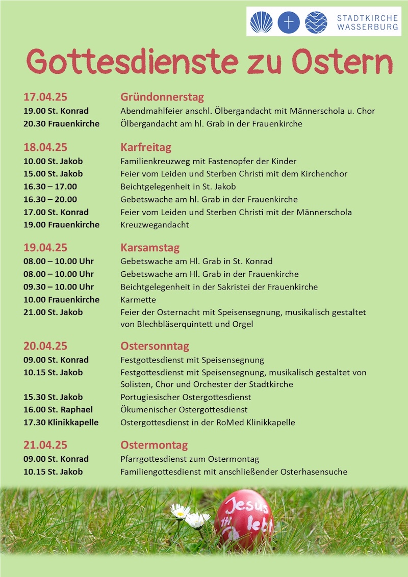 Ob Abendmahlfeier, Gebetswache oder Festgottesdienst – von heute, Gründonnerstag, bis Ostermontag gibt es bei der Stadtkirche Wasserburg eine Vielzahl an Terminen. Hier eine Übersicht für die Feiertage: