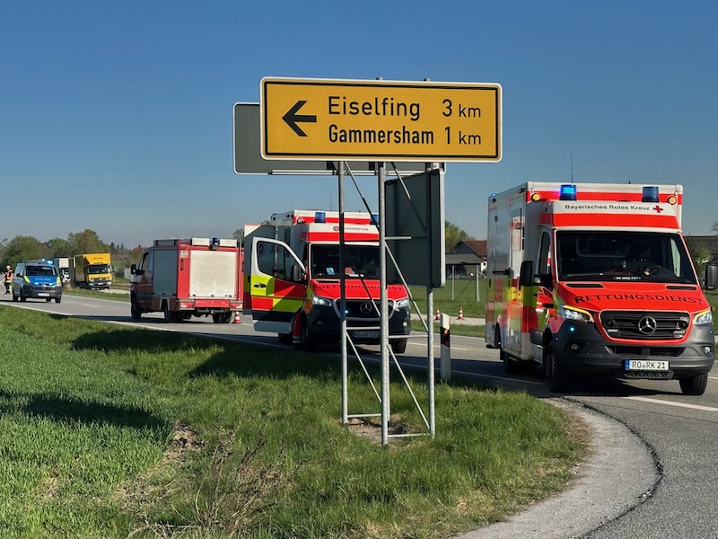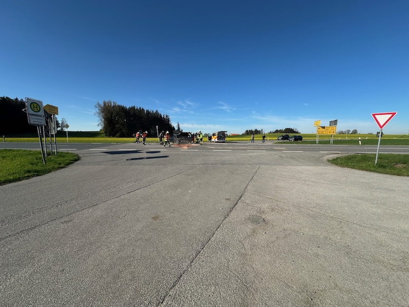 Einsatz am Samstagmorgen für die Feuerwehr Schönberg: Die Floriansjünger rücken quasi vor die Haustür ihres Gerätehauses aus. An der Abzweigung der B304 Richtung Eiselfing hat sich gegen 8.30 Uhr ein Unfall ereignet. Zwei Pkw sind an der Kreuzung zusammengeprallt. Es gab mehrere Verletzte, darunter auch Kinder. Die B304 musste kurzzeitig komplett gesperrt werden. Wir berichten weiter …