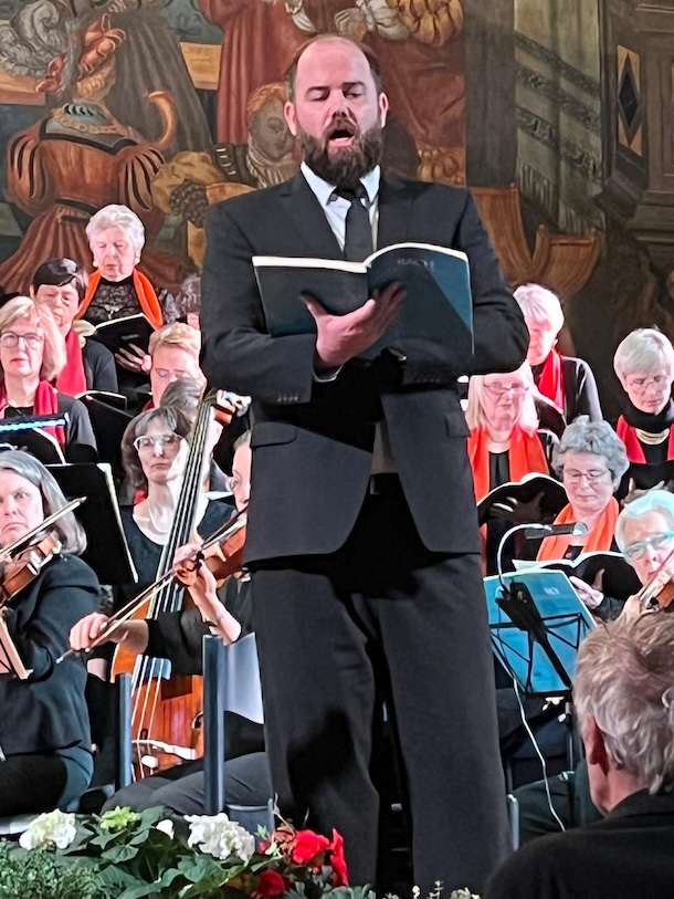 Doch auch Niklas Mallmann, der die Partie des Jesus und die Bass-Arien vortrug, ist international renommiert. Tobias Gründl, der erst Physik erfolgreich studierte, und später seine Leidenschaft für die Musik entdeckte, ist mittlerweile auch als Gesangssolist international bekannt und renommiert. Er sang mit großer Hingabe die Rolle des Pilatus.
