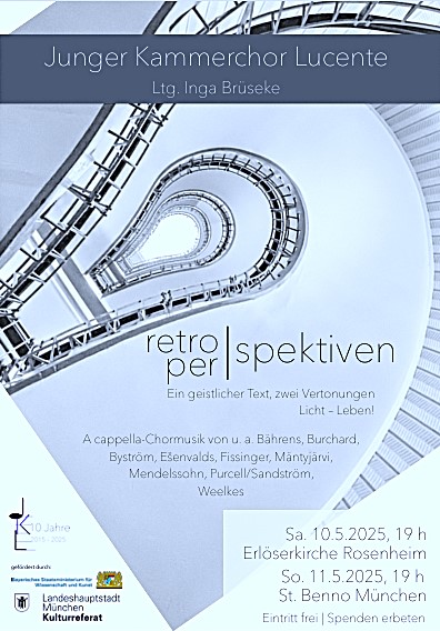 Der junge Kammerchor „Lucente“ unter der Leitung von Inga Brüseke hat sich in seinem zehnjährigen Bestehen weit über München hinaus einen Namen gemacht: Hervorragende Rezensionen, eine OPUS-Klassik-Nominierung, eine Zusammenarbeit mit ECHO-Preisträger Sven Helbig oder den international renommierten Dirigenten Kristian Järvi wie Martin Berger sowie mit Komponisten aus dem In- und Ausland – ein Zeugnis für die großartigen Leistungen des Ensembles.