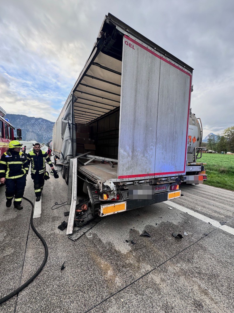 UPDATE um 8.30 Uhr:Zwischenzeitlich konnte die Vollsperrung der A93 in Fahrtrichtung Kufstein aufgehoben werden, der Verkehr wird bis zur Beendigung der Aufräumarbeiten einspurig an der Unfallstelle vorbeigeleitet. Fotos: WS