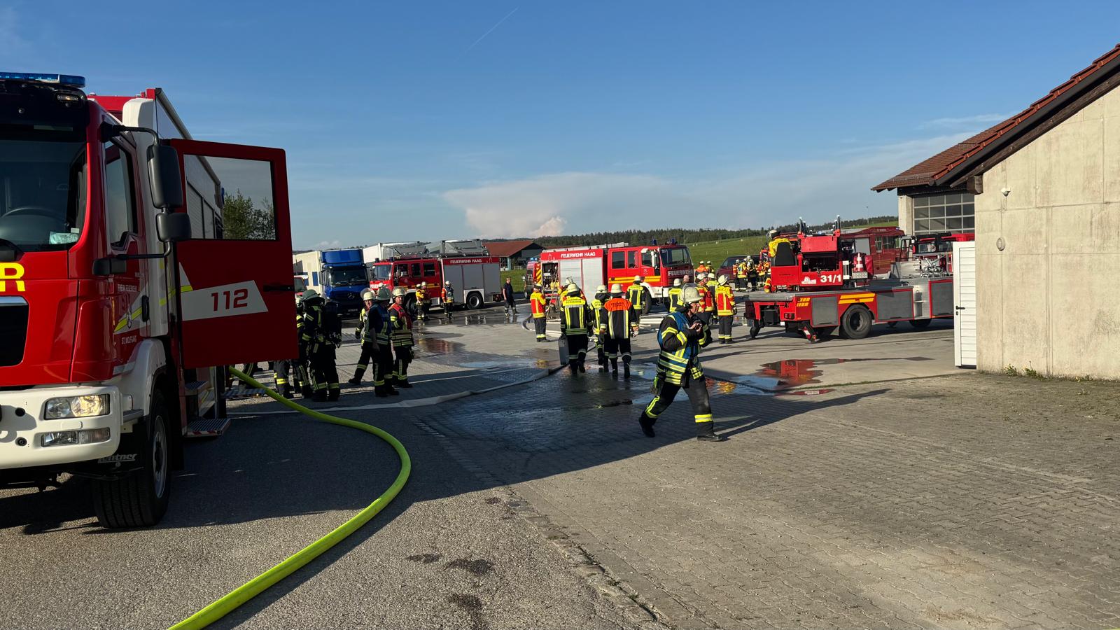 Brand auf Gelände eines Gewerbebetriebes - Feuerwehren rücken nach Pyramoos bei Sankt Wolfgang aus