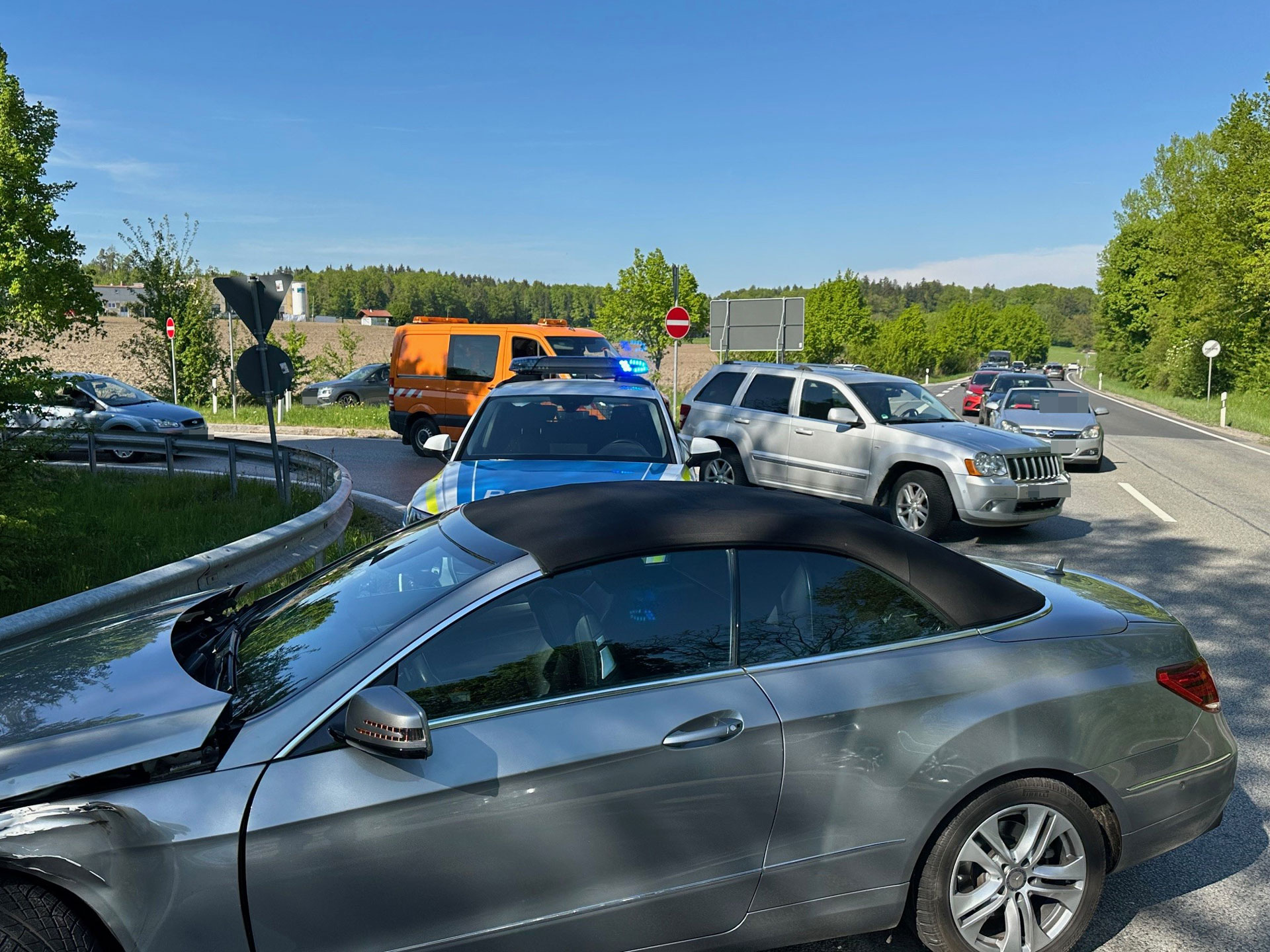 Am heutigen Nachmittag, gegen 16 Uhr, kam es auf der B304 bei Gabersee zu einem Verkehrsunfall. An der Abfahrt nach Wasserburg kollidierten ein Lkw und ein Pkw miteinander. Der Unfall ereignete sich mitten im Berufsverkehr und führte zu erheblichen Verkehrsbehinderungen. Zahlreiche Verkehrsteilnehmer mussten lange Wartezeiten in Kauf nehmen. Der Einsatz der Feuerwehr war nicht nötig. Polizeibericht folgt… Fotos: Georg Barth