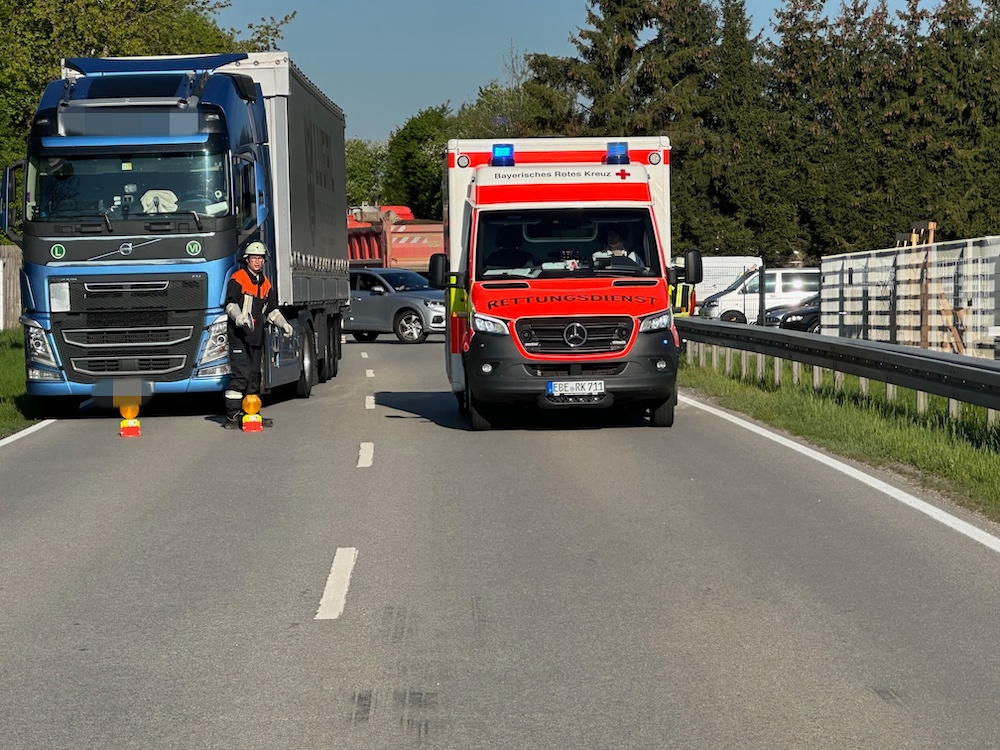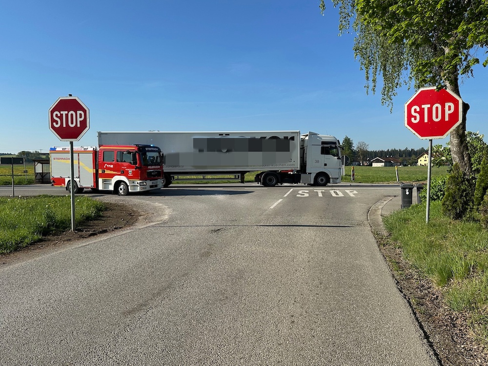 48 Einsatzkräfte der Feuerwehren Pfaffing, Edling und Steppach befanden sich vor Ort, sperrten und sicherten die B304 kurzzeitig ab.