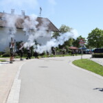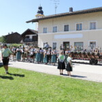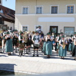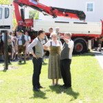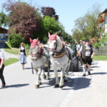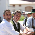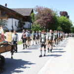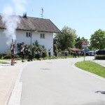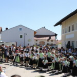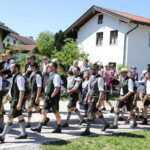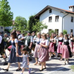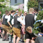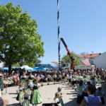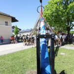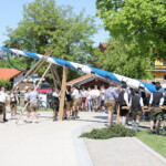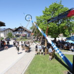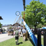 In prächtiger Tracht waren alle Beteiligten und viele Besucher gekommen. Angeführt von der Ameranger Dorfmusik wurde der Maibaum mit einem Pferdegespann gemeinsam zur Ortsmitte gebracht. Die Evenhausener Böllerschützen begrüßten den Festzug mit lautstarken Salutschüssen. Meter für Meter wurde das Brauchtumsstangerl traditionell mit Schwaiberl in die Senkrechte gestemmt. Nach nur eineinhalb Stunden ragte der Maibaum in die Höhe. Mehrere Stunden lang wurde in der Dorfmitte weitergefeiert. Es gab Kaffee und Kuchen, Gegrilltes und Süffiges beim geselligen Feiern.
