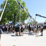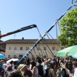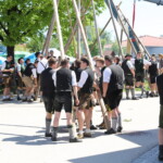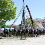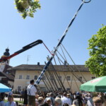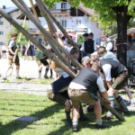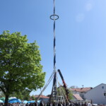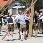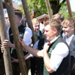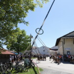Die Ortvereine aus Evenhausen hatten gut zu tun, als am Donnerstagmittag die Maibaum-Diebe aus Babensham das gehütete Traditionsstangerl wieder zurückbrachten. Viele Helferinnen und Helfer kamen zusammen, um mit viel Muskelkraft und für die Absicherung mit technischer Unterstützung den Evenhausener Maibaum in die Höhe zu hieven.