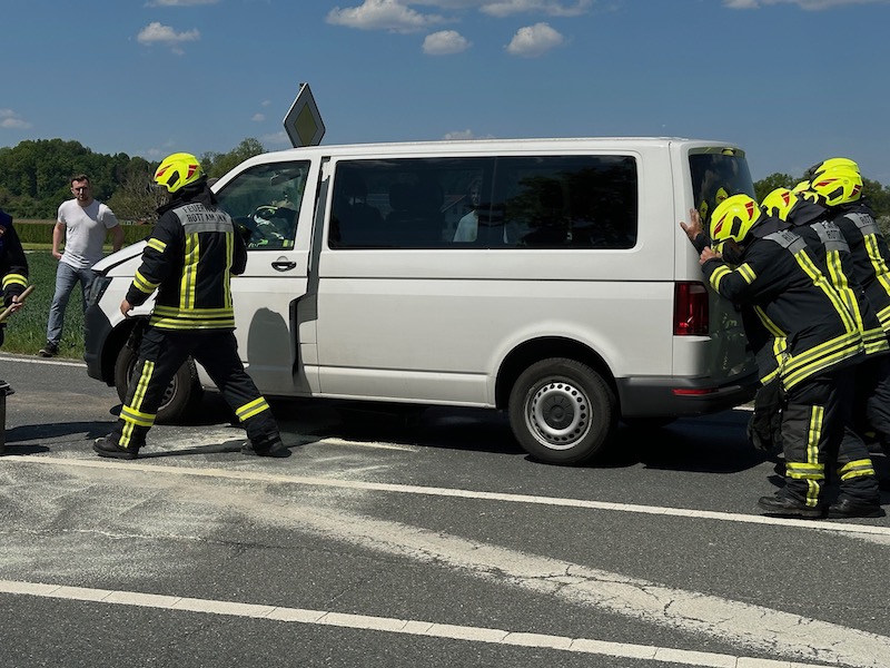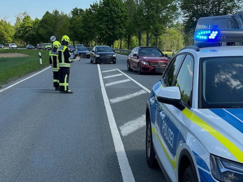 Alarm für die Helfer der Feuerwehr aus Rott und die Polizei: Höhe der Abzweigung nach Katzbach sind auf der B15 im Gemeindebereich von Ramerberg am Freitagnachmittag zwei Pkw zusammengeprallt. Es kam zu Verkehrsbehinderungen. Der Polizeibericht folgt. Fotos: Georg Barth