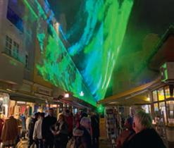 Die Zuschauer können es sich in Liegestühlen bequem machen und sich von den Lichtern, Farbspielen, flackernden Feuertonnen und natürlich den bildgewaltigen Filmen, mitten im Herzen der Stadt, mitreißen und verzaubern lassen. Als weiteres besonderes Highlight lädt eine Laserinstallation, die sich wie ein schimmernder Dachfächer über den Platz spannt, zum Träumen ein.