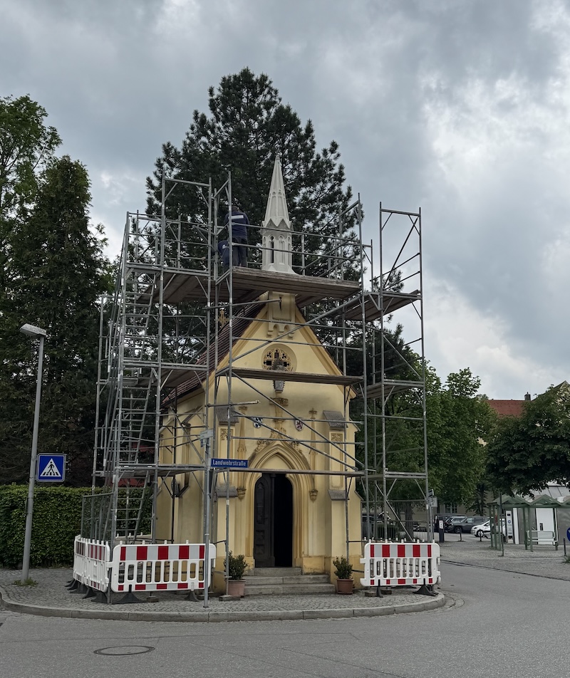 Jetzt ist das Türmchen wieder an Ort und Stelle. Die Maurerzunft plant für September eine offizielle Einweihung für die dann durchsanierte Max-Emanuel-Kapelle. Für die Restaurierung benötigt die Maurerzunft übrigens noch Spenden.