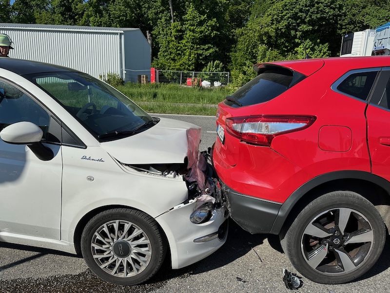 Nach ersten Informationen der Polizei fuhren die drei Fahrzeuge aufeinander auf, nachdem der Fahrer des ersten Pkw verkehrsbedingt bremsen musste. Die beiden unmittelbar nachfolgenden Fahrzeuge hielten keinen ausreichenden Sicherheitsabstand zu dem vorausfahrenden Pkw beziehungsweise zueinander ein und fuhren aufeinander auf. Alle beteiligten Pkw waren nach dem Unfall nicht mehr fahrbereit und erlitten einen wirtschaftlichen Totalschaden.