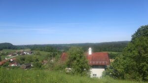 Die Wanderung führte die Gruppe dann an Hohenburg vorbei Richtung Weiher, wo solch ein südexponierter Hügel bestiegen wurde. Die am Hang befindliche Wiese wird wegen ihrer erschwerten Bewirtschaftung auch nicht wie früher als Einstreu oder Kälberwiese genutzt. Solche Wiesen werden jedoch von engagierten Landwirten und Landschaftspflegern meist zweimal im Jahr gemäht.