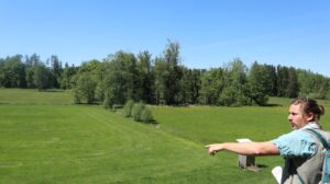 Nach einem kurzen Abstecher in die Filzen, zu einem künstlich angelegten Teich, ging es für die Gruppe wieder zurück nach Hohenburg. Dort wurde der „Burgberg” bestiegen und den Anwesenden bot sich ein unvergesslicher Blick über das Gemeindegebiet und den Inn. Dabei hob Jonas Garschhammer nochmals hervor, dass Hohenburg früher aufgrund von Beweidung und Bewirtschaftung nicht so zugewachsen war und einen noch schöneren Anblick darstellte. Zum Abschluss der Führung ging es den Serpentinenweg auf der Südseite wieder hinunter nach Rieden.