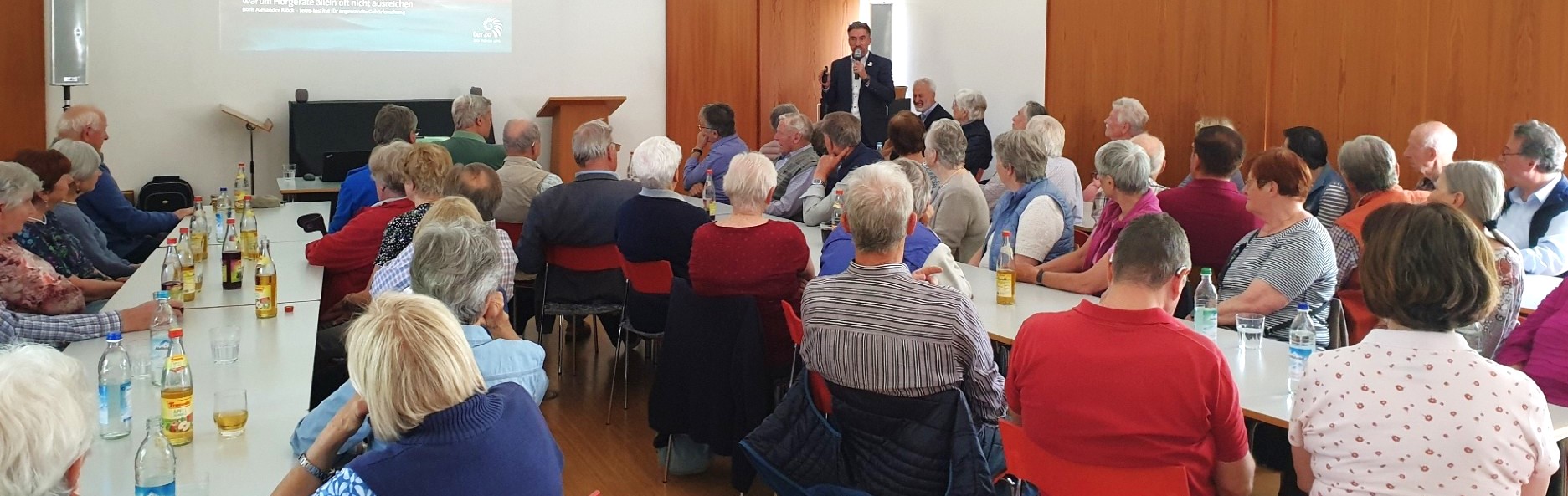 Er erklärte den zahlreich erschienenen Zuhörern, dass ein gut angepasstes Hörgerät in Verbindung mit einem dreiwöchigem Hörtraining sehr gute Resultate erbringen könne.
