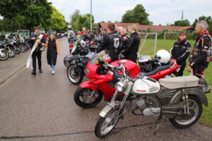 „Ein Biker kennt kein schlechtes Wetter, auch der Segen kommt vom Himmel“, so der Diakon bevor er die Segensworte, einen passenden Lesungstext und Fürbitten sprach. Martin Glockshuber von den Motorradfreunden bat die Anwesenden in seiner Begrüßung in Stille an die verstorbenen Motorradfahrer zu gedenken.