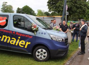 Eingeladen hatte auch der DJK-SV Griesstätt, da die Firma Autoglas Maier für die Griesstätter Ortsvereine einen neuen Neunsitzer-Omnibus gestiftet hat als Ersatz für den bisherigen, schon einige Jahre alten Bus. DJK-Vorstand Christoph Bauer dankte dem Firmenchef Michael Maier nach der Segnung des Fahrzeugs durch Diakon Frank für die großzügige Unterstützung.