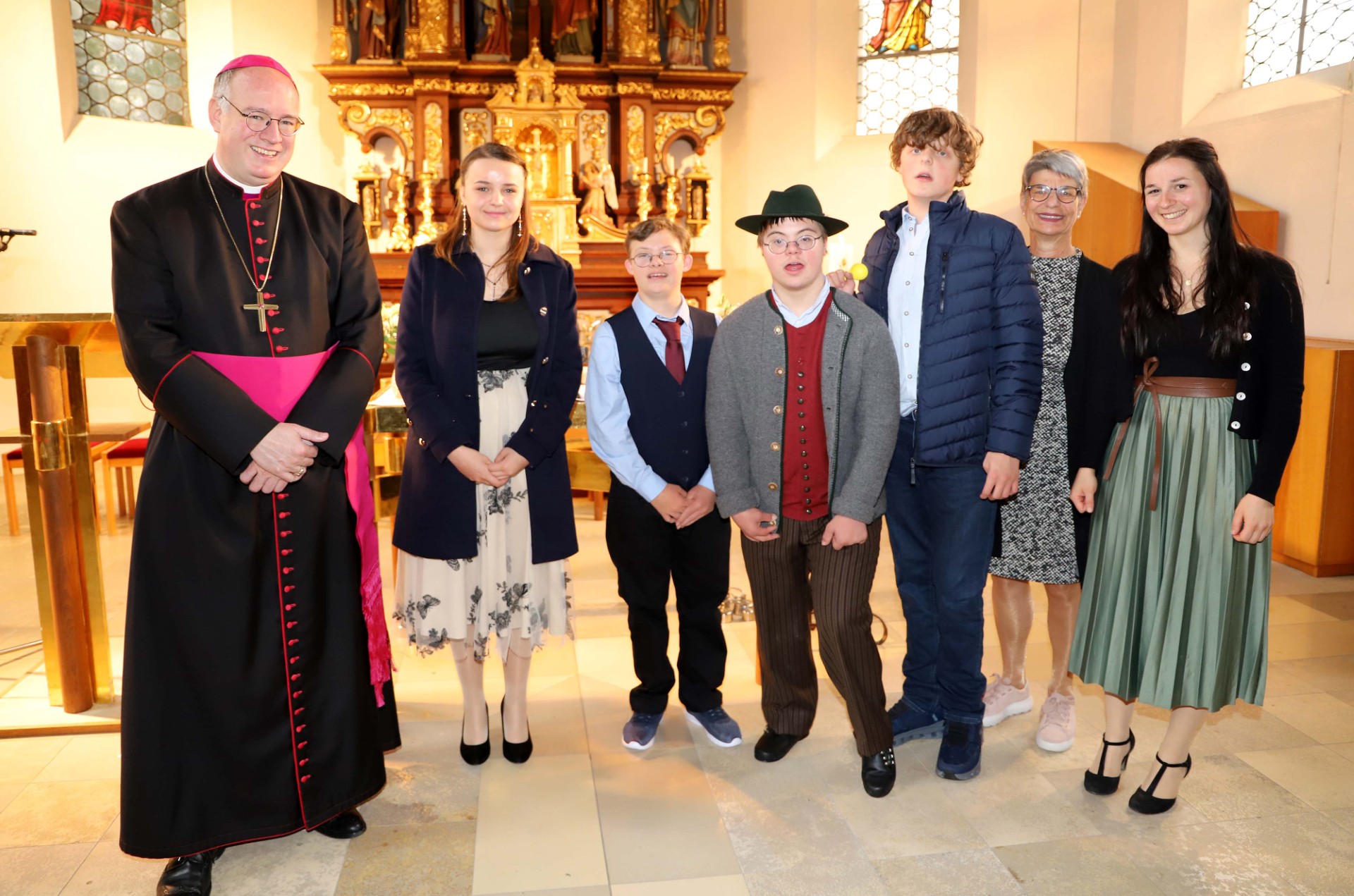 Das Foto zeigt von links Weihbischof Rupert Graf zu Stolberg, Malwina Sobel, Maximilian Neumeier, Hans-Peter Sumerer, Felix Rohwsky, Ann-Kathrin Lenz-Honervogt und Anna-Magdalena Gartner.