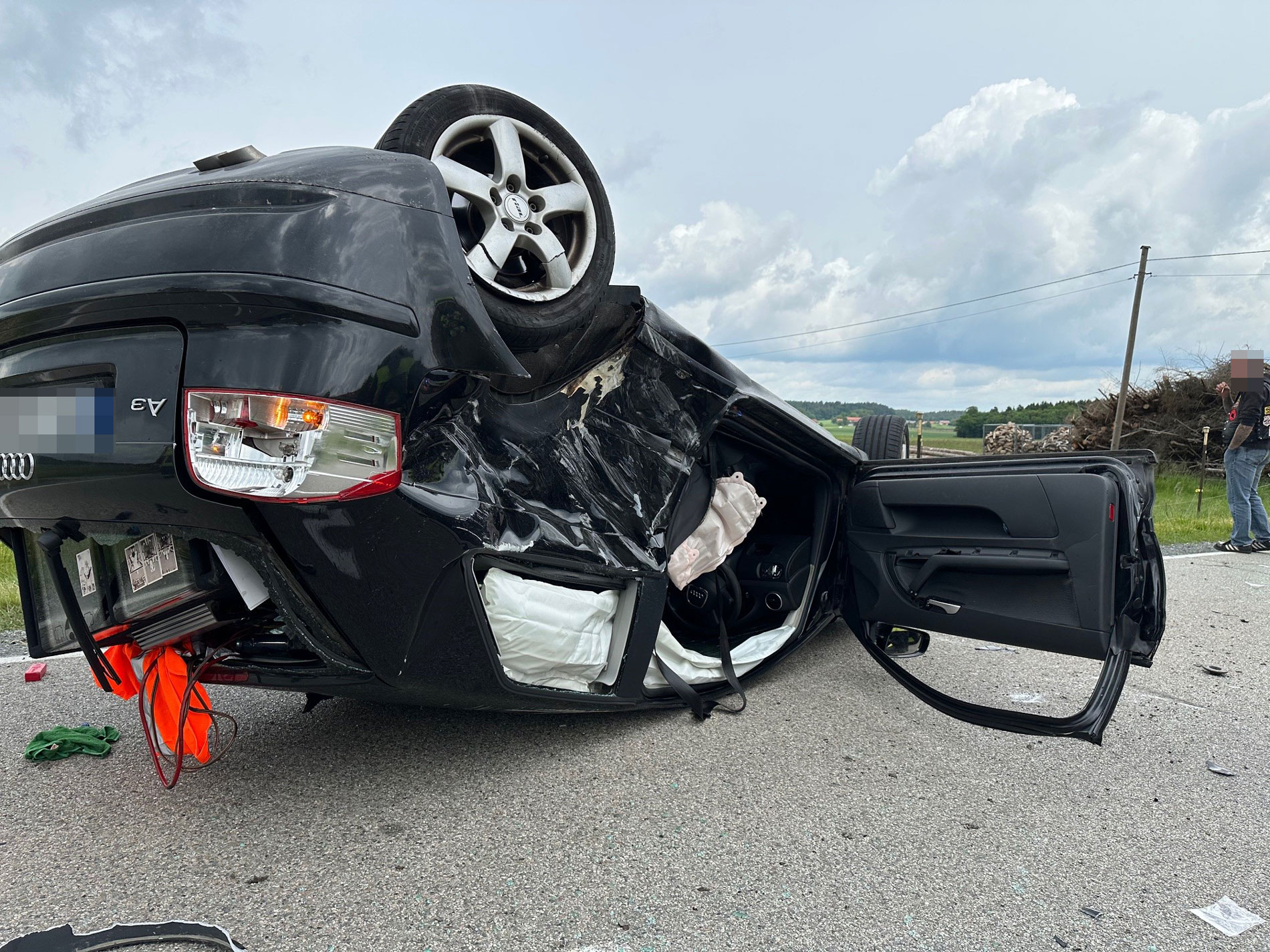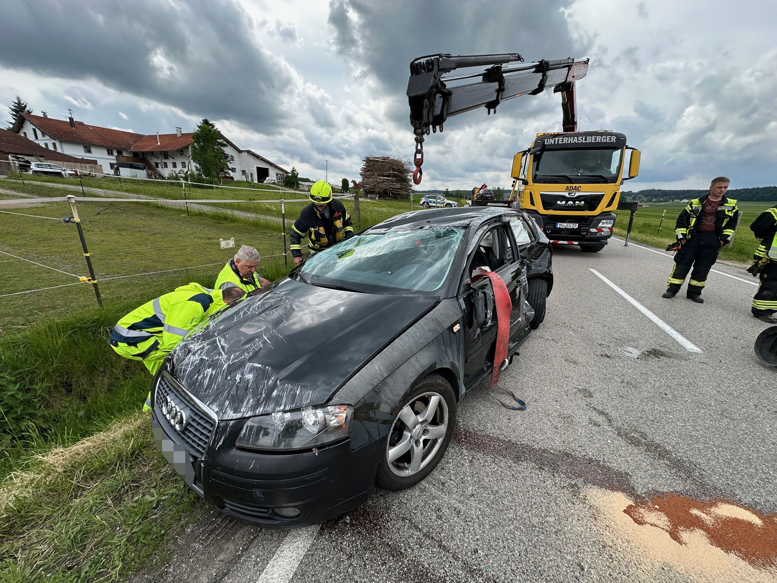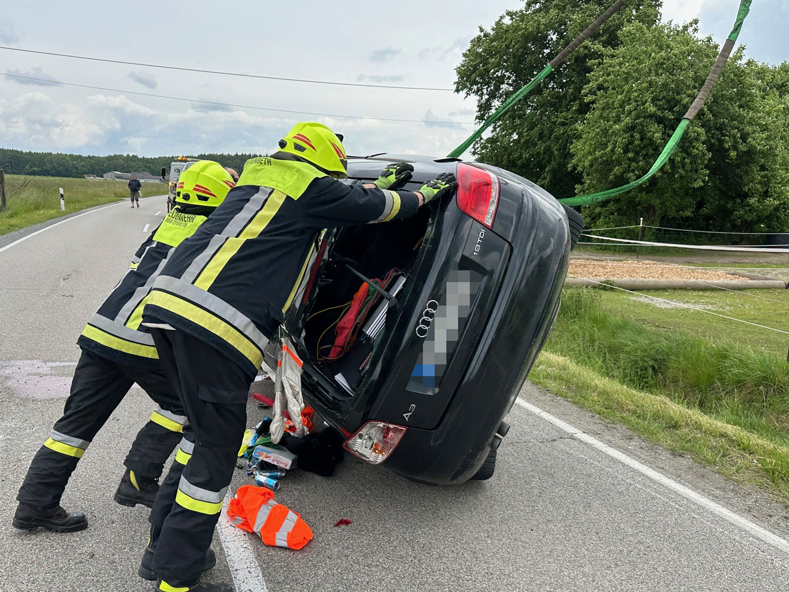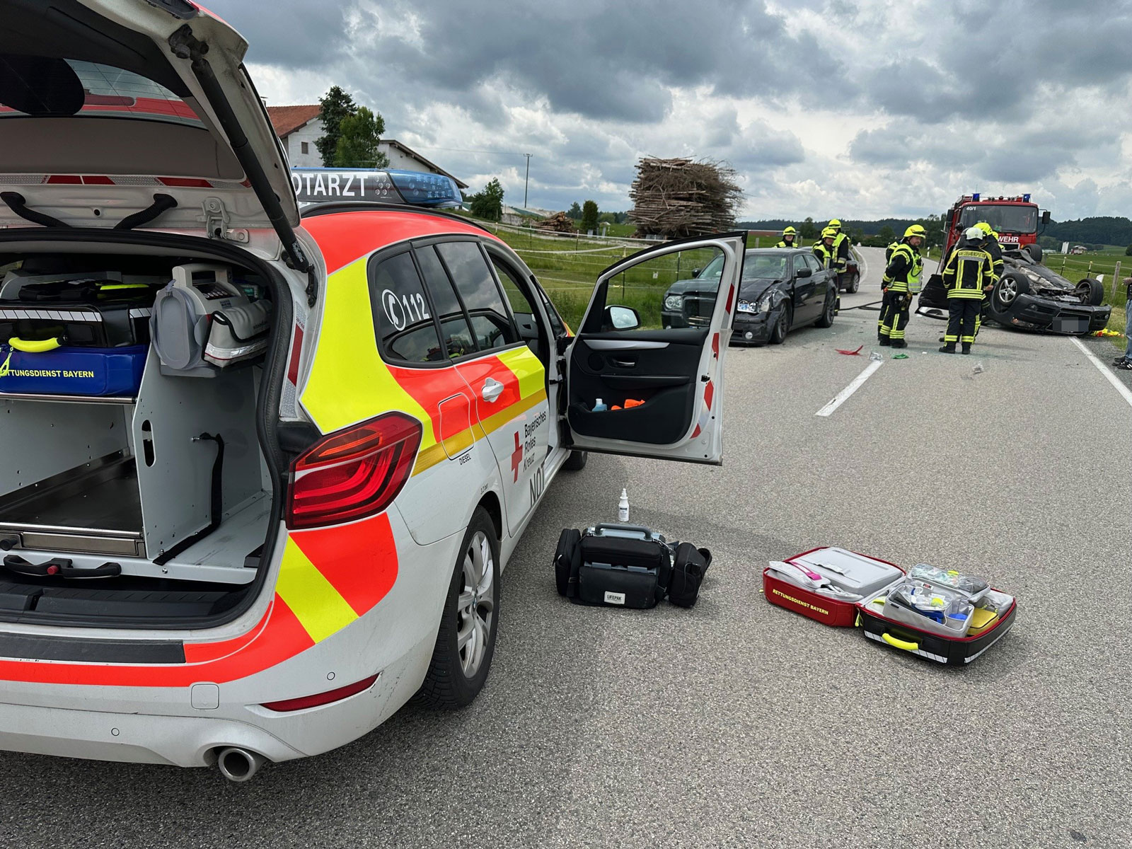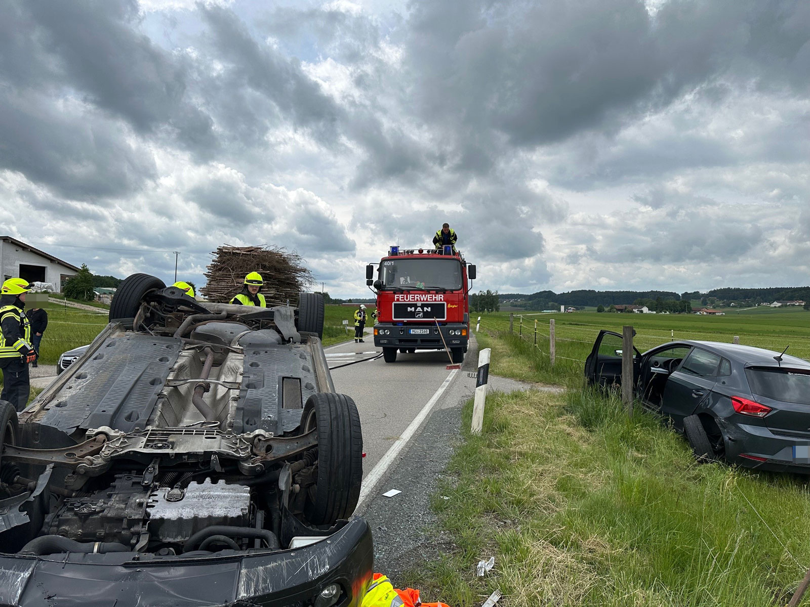 Alarm für die Feuerwehr Maitenbeth am Donnerstagnachmittag: Die Floriansjünger rücken gegen 13.40 Uhr nach Brandstätt aus. Dort hat sich ein Verkehrsunfall ereignet. Drei Autos wurden verwickelt. Ein Pkw liegt auf dem Dach. Der Rettungsdienst und der Notarzt sind auch im Einsatz. Es gab Verletzte. Polizeibericht folgt … Fotos: Georg Barth