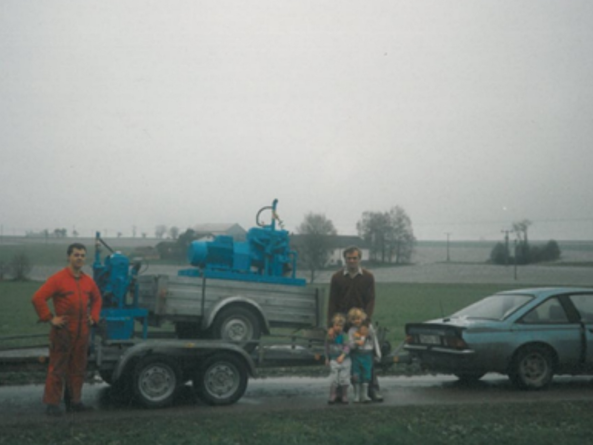 1985: zeigt Hans Hochreiter mit dem ersten BHKW.
