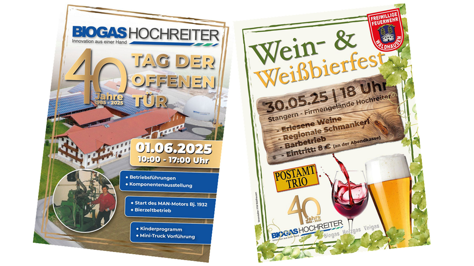 Am Sonntag, 1. Juni, lädt die Firma Biogas Hochreiter zum Tag der offenen Tür ein. Besucherinnen und Besucher erwartet ab 10 Uhr ein abwechslungsreiches Programm für die ganze Familie: ein großes Kinderprogramm, spannende Betriebsführungen, eine Ausstellung moderner Komponenten der Biogastechnik, ein Trödelmarkt sowie kulinarische Schmankerl vom Grill. Eine ideale Gelegenheit, um einen Blick hinter die Kulissen moderner Biogastechnologie zu werfen.