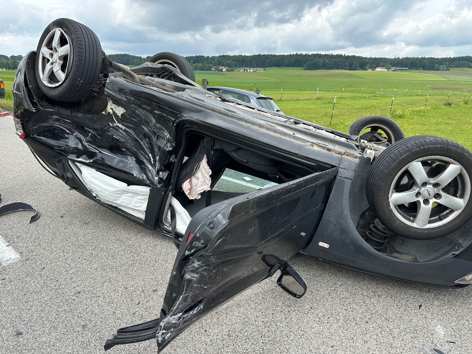 Der Pkw des 19-Jährigen wurde durch die Wucht des Aufpralls auf die Gegenfahrbahn geschleudert, wo er mit einem entgegenkommenden Auto kollidierte, bei dem ein 47-Jähriger aus dem Landkreis Aichach-Friedberg am Steuer saß. Das Auto überschlug sich.