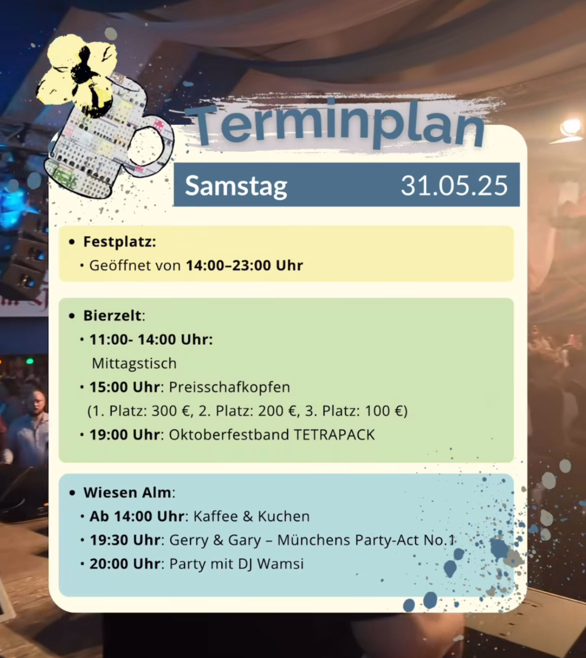 Heute auf dem Frühlingsfest: Tag 4 Ab 15 Uhr großes Preisschafkopfen - „Gerry & Gary" und „Tetrapack" spielen heute Abend in Alm und Zelt Unsere Übersicht zum Festprogramm – Tag 4 heute auf dem Frühlingsfest: Teilen Sie diesen Beitrag!teilen teilen merken teilen teilen teilen Schaufenster Von Robert Berer|2025-05-31T10:40:20+02:00Sa. 31.5.2025 - 10:38|Kategorien: Schlagzeilen|Tags: WIESN 2025|0 Kommentare Hinterlassen Sie einen Kommentar Antworten abbrechenKommentar Mit der Nutzung dieses Formulars erklären Sie sich mit der Speicherung und Verarbeitung Ihrer Daten durch diese Website einverstanden. Weitere Informationen erfahren Sie in der Datenschutzerklärung. Bitte lesen Sie hier auch unseren Leitfaden für die Veröffentlichung von Kommentaren. * Δ