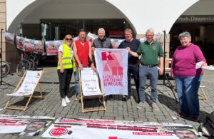 Kürzlich fand eine Aktion zum Sonntagsschutz am Max-Josefs-Platz in Rosenheim statt. Die Sonntagsallianz Rosenheim-Oberbayern hat in Kooperation mit dem DGB Oberbayern und der Katholischen Arbeitnehmer Bewegung Deutschlands (KAB) mit einer Unterschriftenaktion auf die fatalen Auswirkungen zum neuen Entwurf des Ladenschlussgesetzes aufmerksam gemacht.