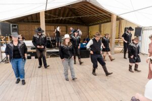 Rund 400 Besucher feierten ungezwungen – neben Showeinlagen wie Lassowerfen, Peitschenknallen und Messerwurf gab es einen Linedance zu bewundern, bei dem man auch selbst mittanzen konnte.