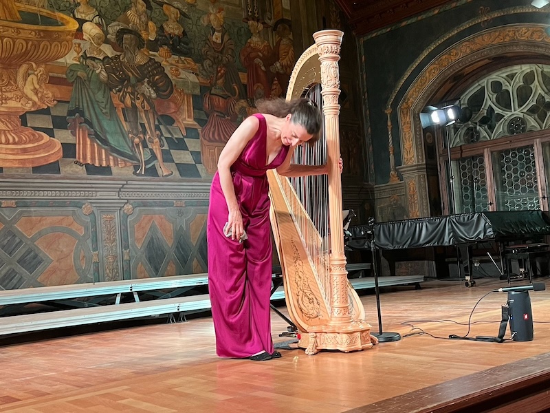 Schließlich müsse auch ihre Harfe viel reisen, so an die 40.000 Kilometer pro Jahr kämen da schon zusammen.