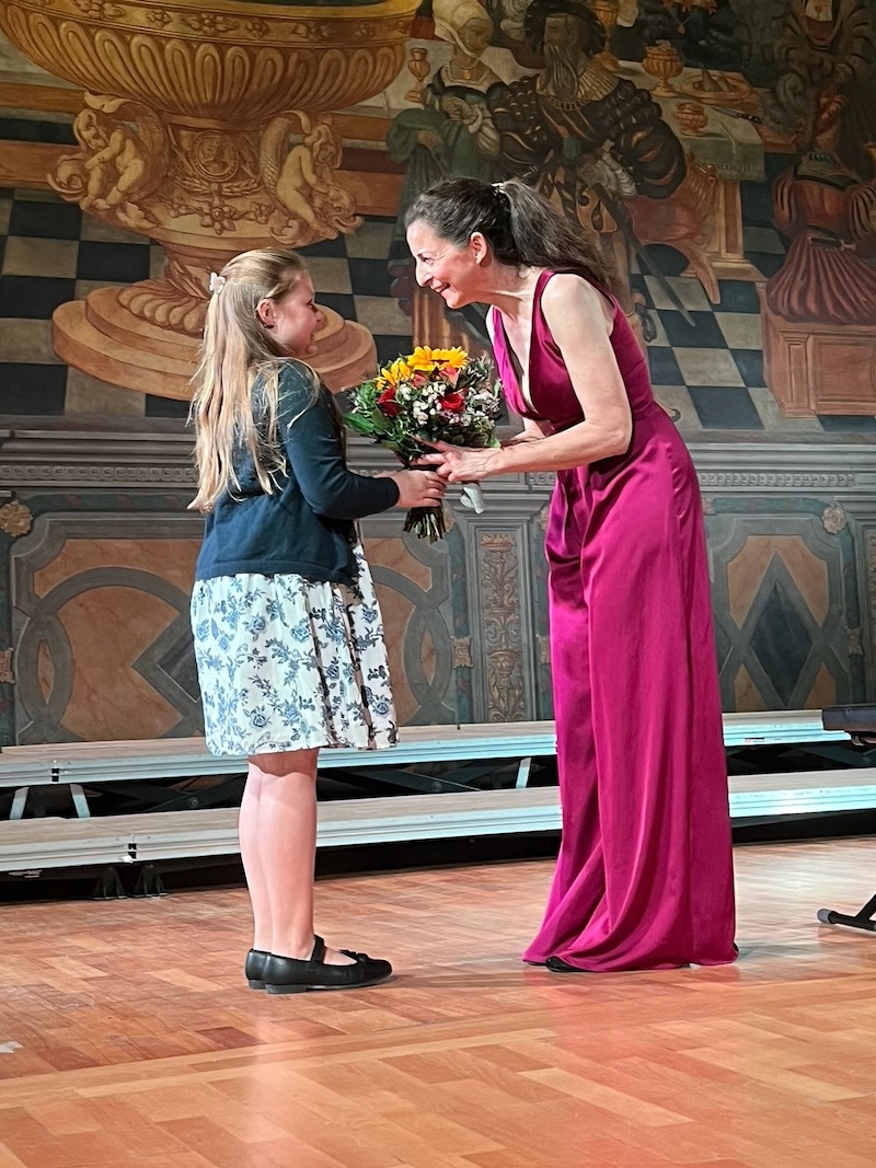 Und dann zeigte sie dem begeisterten Publikum, was sie unter filigraner Fingerfertigkeit versteht. Wie ein höchst feinfühliger Wirbelwind glitten ihre Finger über die Saiten und zupften die Harmonien in höchst melodischer Weise, so dass die Wasserburger förmlich verzaubert werden konnten. Mit dem „Einzug der Königin von Saba“ aus dem Oratorium „Solomon“ von Georg Friedrich Händel eröffnete sie das Konzert und leitete sofort zur „Fantaisie sur un thème de Haydn“ von Marcel Grandjany, jenem bekannten französischen Harfenisten des frühen 20. Jahrhunderts über. Das Publikum quittierte mit euphorischem Applaus die unglaublich farbig spielende Silke Aichhorn.