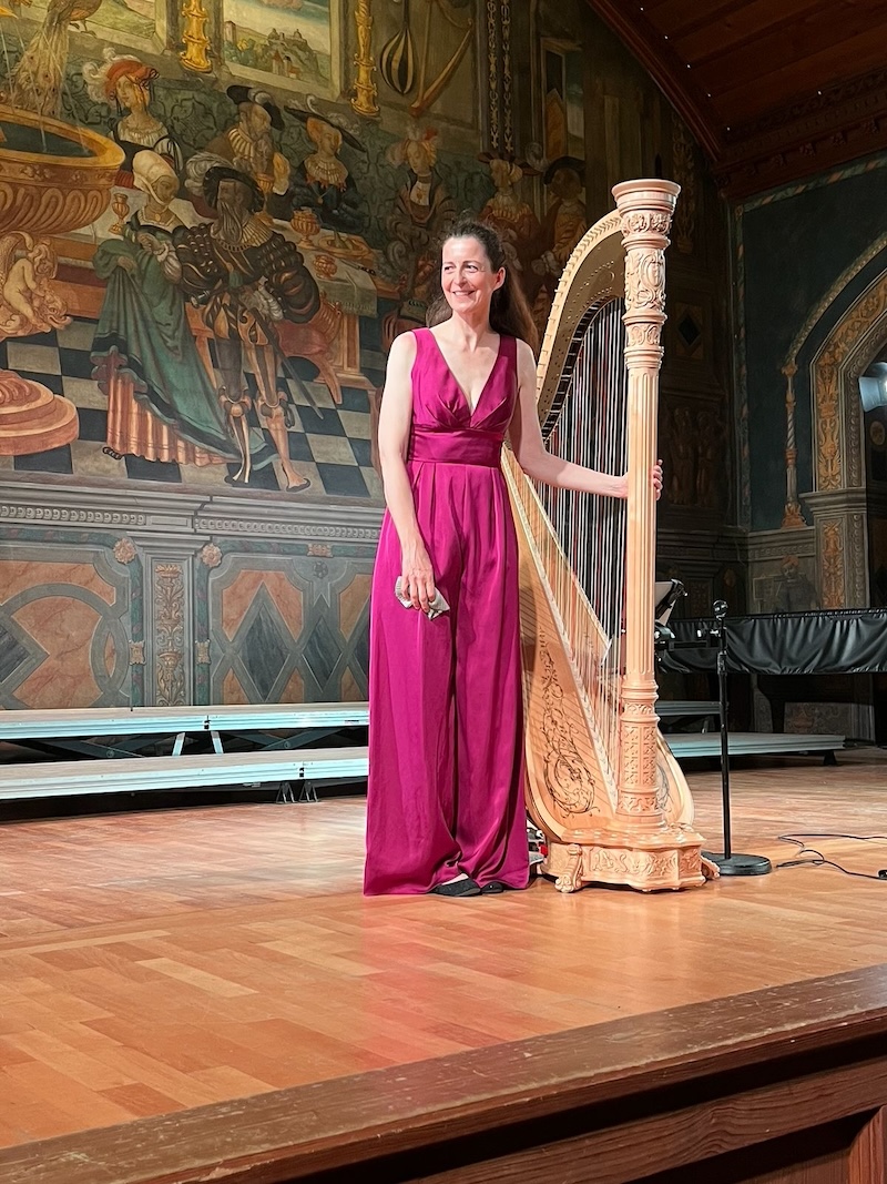 Das Publikum war nunmehr gefangen und gefesselt, sodass Silke Aichhorn mit der Barcarole auf Jacques Offenbachs „Hoffmanns Erzählungen“ aufwarten konnte, bevor sie mit „Harping on the Harp“ von Robert Maxwell zum Abschluss dieses begeisternden Abends kam. In ihrer Moderation ließ sie den voll besetzten Rathaussaal noch wissen, dass die aus Österreich stammende Gattin Ludwig XVI., Marie Antoinette, die Harfe im ausklingenden 18. Jahrhundert nach Frankreich gebracht habe und es im Paris des 19. Jahrhunderts zwei Harfenbauer gegeben habe.