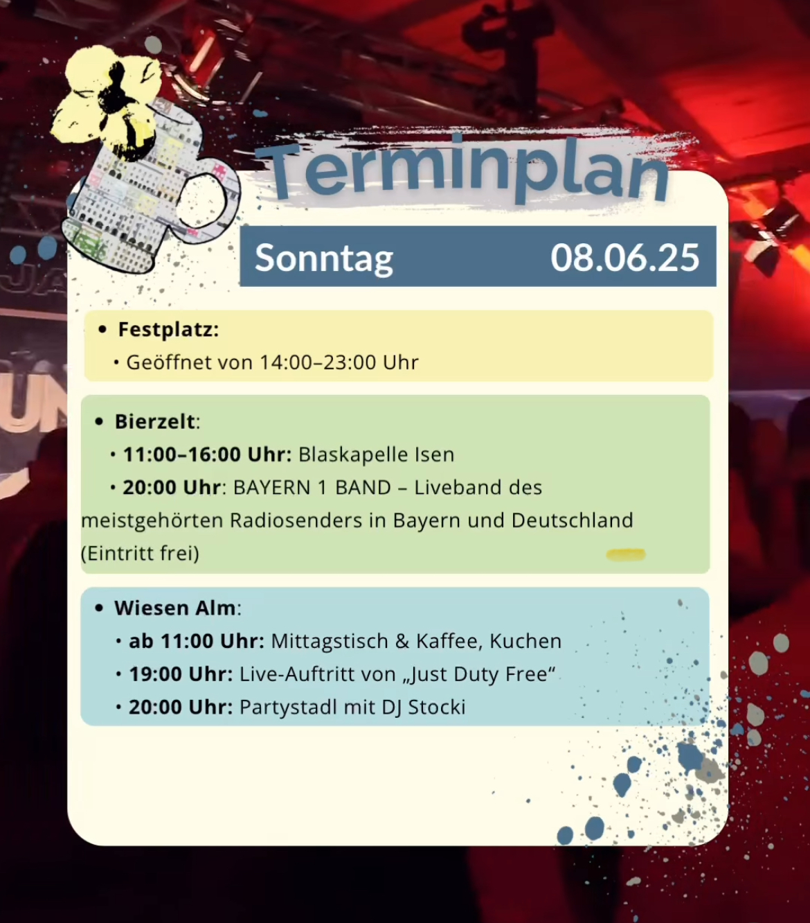 Heute auf dem Frühlingsfest: Tag 12 Spitzenbands „Bayern 1 Band" und „Just Duty Free" heute Abend in Wasserburg - Eintritt frei Unsere Übersicht zum Festprogramm – Tag 12 heute auf dem Frühlingsfest: Teilen Sie diesen Beitrag!teilen teilen merken teilen teilen teilen Schaufenster Von Robert Berer|2025-06-08T13:29:43+02:00So. 8.6.2025 - 13:29|Kategorien: Schlagzeilen, Wasserburg aktuell|Tags: WIESN 2025|0 Kommentare