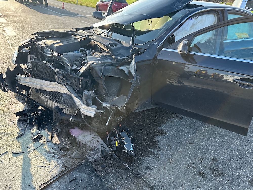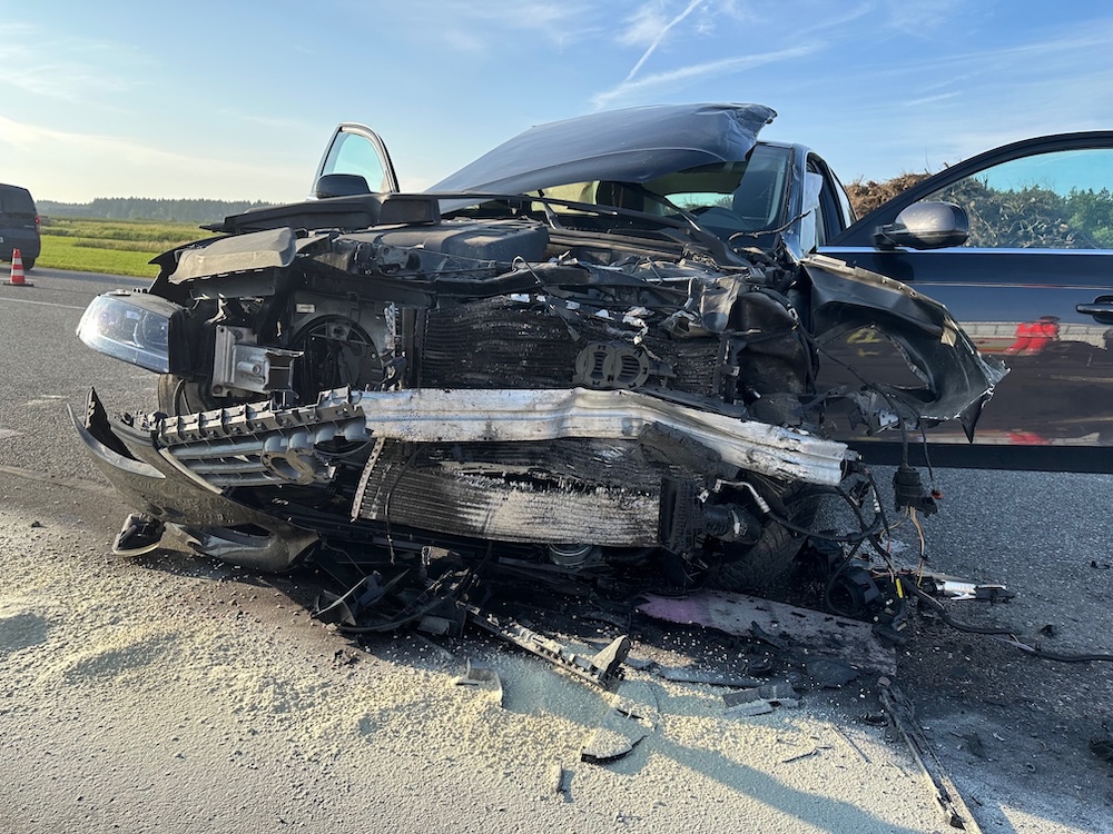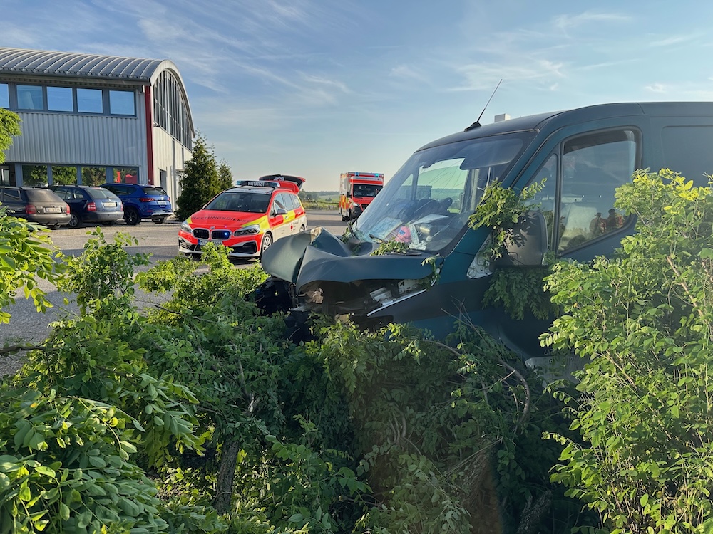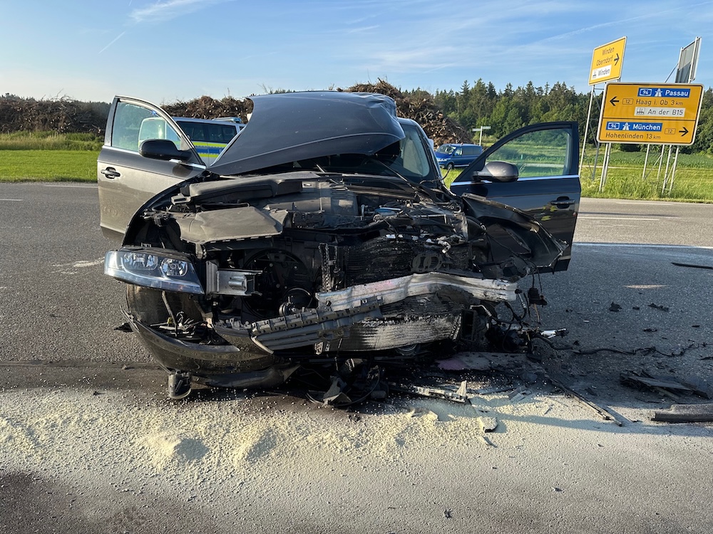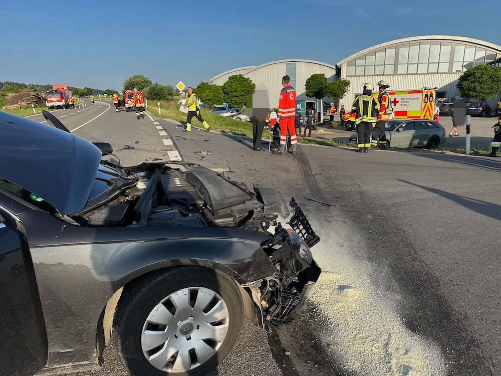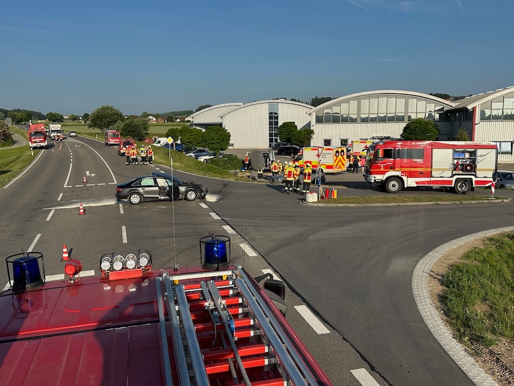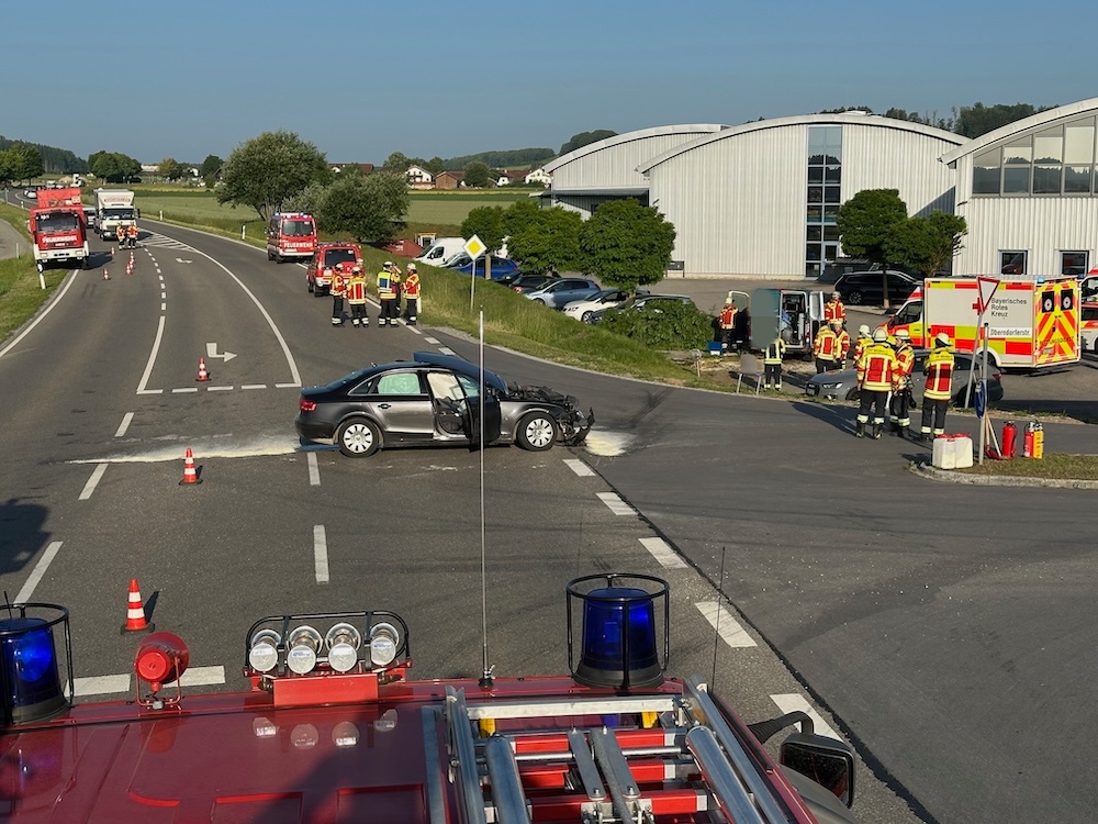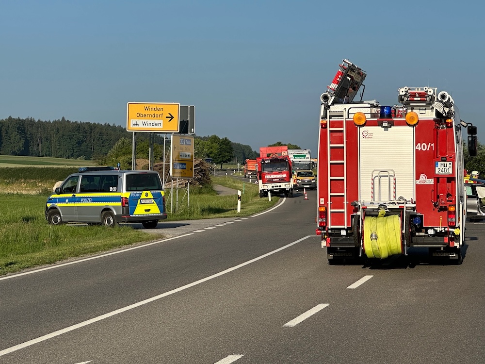 Alarm für die Feuerwehren Winden und Haag am Freitagmorgen: Gegen 6.15 Uhr rückten die Floriansjünger heute zu einem schweren Unfall auf die B12 aus. Bei Winden waren ein Pkw und ein Kleintransporter an einer Kreuzung zusammengeprallt. Ein Fahrzeuginsasse wurde so schwer verletzt, dass ein Rettungshubschrauber angefordert werden musste. Polizeibericht folgt. Fotos: Georg Barth