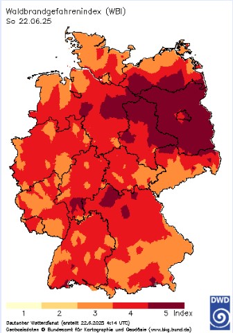 Laut der Waldbrandindexkarte des Deutschen Wetterdienstes bestehen im Landkreis Rosenheim die Gefahrenstufen vier und fünf, das bedeutet hohe bis sehr hohe Waldbrandgefahr.
