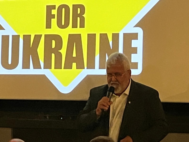 Und so wurde eingeladen zu einem Abend, der gleich mehrere Ziele verfolgte. Zum einen sollte auf diesen furchtbaren Krieg aufmerksam gemacht werden, der gerade einmal 1.100 Kilometer von uns entfernt seit dreieinhalb Jahren in seiner ganzen Erbarmungslosigkeit tobt. Täglich werden Menschen auf beiden Seiten Opfer dieses Krieges.