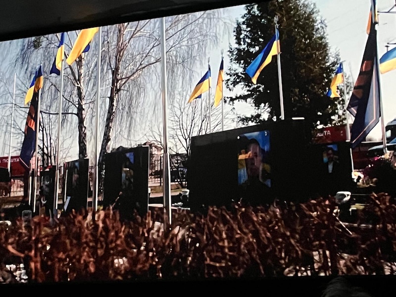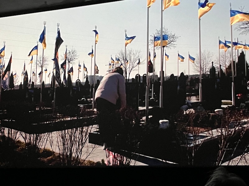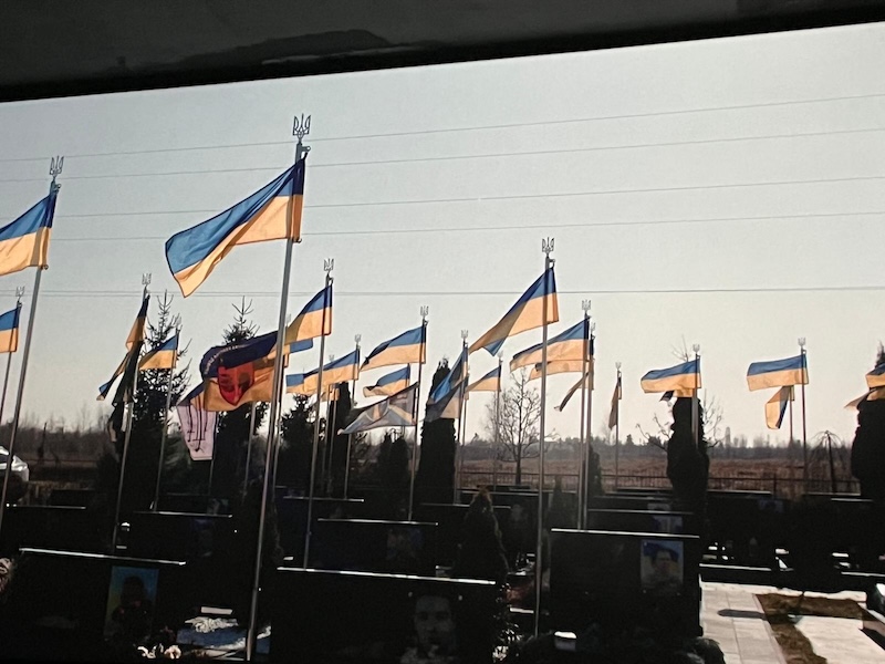 Was dann folgte, war eine vierzigminütige Filmdokumentation über den kürzlichen Transport des Lkw von Traunstein in die Ukraine. In dem Film wird eindringlich geschildert, wie man über die Grenzen nach Österreich, Tschechien und Polen schließlich die Ukraine erreichte. In Lviv, dem ehemaligen Lemberg, das bis 1918 österreichisch war, traf man auf eine Stadt, in der der Krieg der Russen eigentlich weniger Zerstörungen hinterlassen haben dürfte als anderswo. Aber schon am nächsten Tag erreichten sie Schytomyr, wo die Verwüstungen dieses Krieges deutlich zahlreicher sein dürften. Und dann zeigt der Film die Zerstörungen in Butscha, jener Stadt am westlichen Stadtrand von Kiew, die 2022 noch 35.000 Einwohner zählte und durch ein grausames Massaker der russischen Armee zahlreiche Opfer zu beklagen hatte.