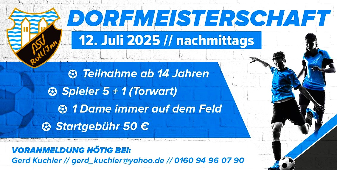 Der ASV Rott freut sich auf viele Teams und einen fairen, fröhlichen Turniertag – auf geht’s zur Dorfmeisterschaft 2025!