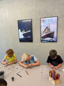 Dort angekommen, war der Vormittag aufgeteilt in einen Workshop und eine Führung. Die ersten und zweiten Klassen haben dabei aus Holz die Titanic nachgebaut, die mit Hilfe eines Röhrchens und einem Luftballon durch das Rückstoßprinzip selbständig im Wasser fahren konnte.