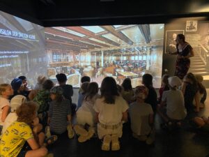 Abschließend durften die Kinder einen kurzen Film über die Kollision der Titanic mit dem Eisberg und dem daraus resultierenden Untergang ansehen, der sehr anschaulich, aber kindgerecht, die Tragödie erzählte.