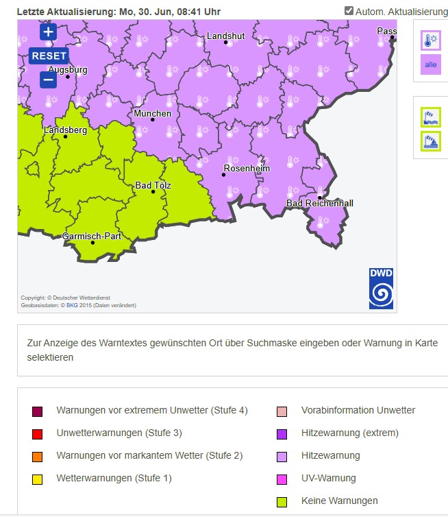 Der Deutsche Wetterdienst mit einer Hitzewarnung für die ganze Region