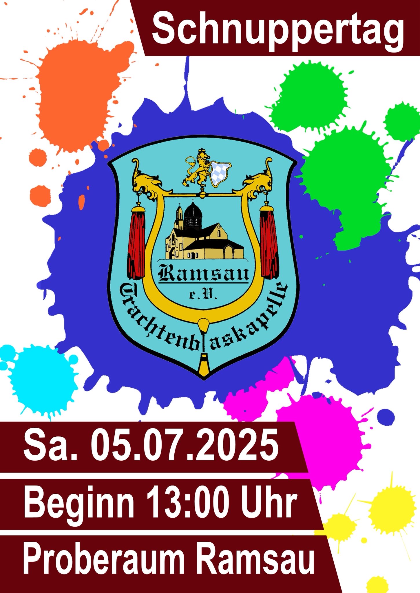 Die Trachtenblaskapelle Ramsau lädt am kommenden Samstag, 5. Juli, alle musikbegeisterten Kinder ab sieben Jahren herzlich zum diesjährigen Schnuppertag ein. Dieser beginnt um 13 Uhr im Proberaum der Trachtenblaskapelle Ramsau. Der Proberaum befindet sich im Keller des Feuerwehrhauses, direkt gegenüber der Kirche.