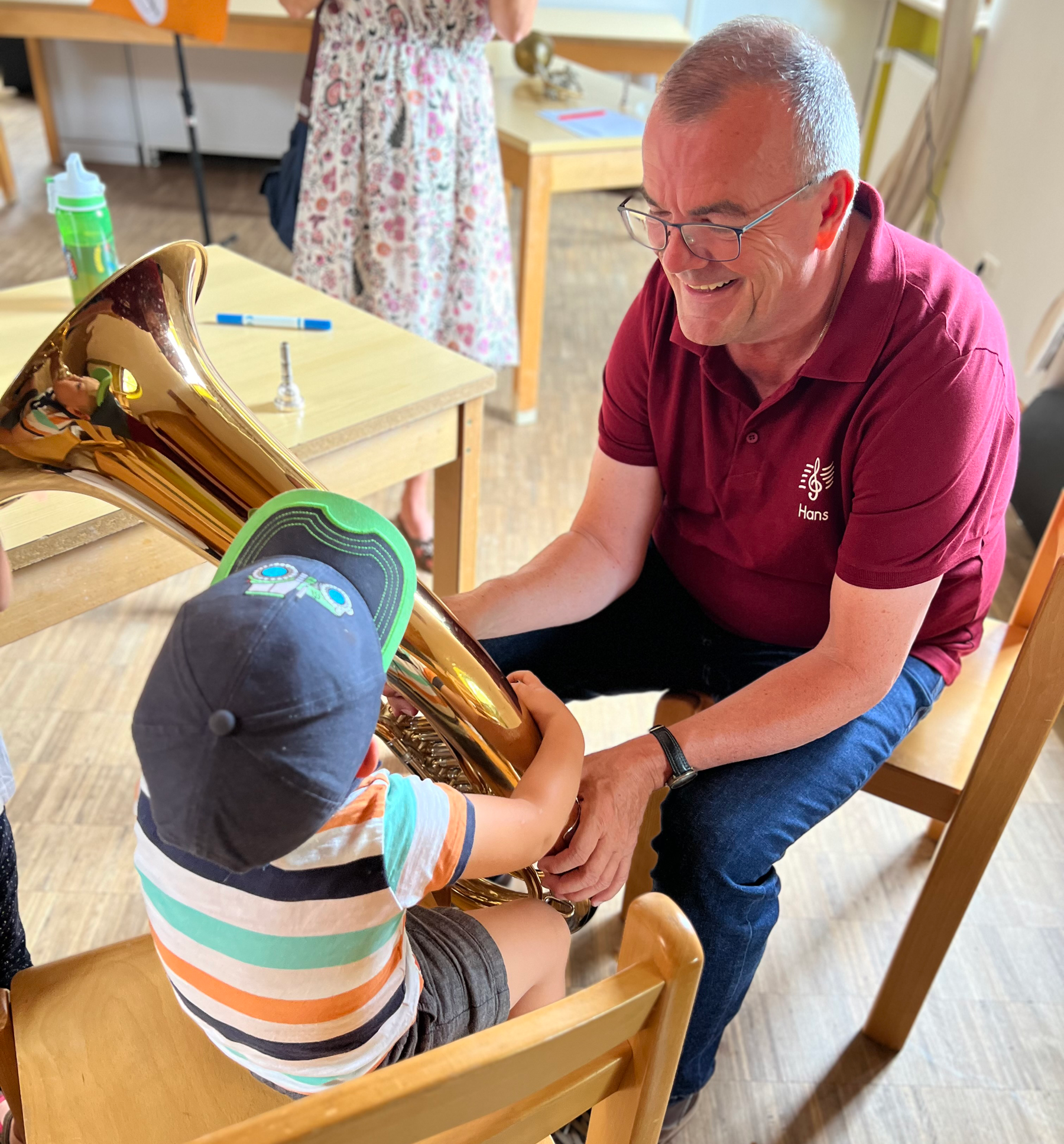 Die jungen Besucher können an diesem Nachmittag nach Herzenslust verschiedene Instrumente wie Trompete, Posaune, Klarinette, Saxophon, Horn oder Schlagzeug ausprobieren und dabei unter Anleitung erfahrener Musiker ihre ersten Töne spielen. Bei einer Instrumentenrallye wird spielerisch gezeigt, wie viel Spaß gemeinsames Musizieren machen kann.