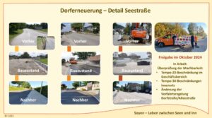 Das Projekt Dorferneuerung schreitet voran. Als „schwierigsten“ Bauabschnitt bezeichnete Weber die Umgestaltung der Seestraße mit Umleitung des Verkehrs durch die Heckenstraße. Er dankte allen Anwohnern für deren Geduld.
