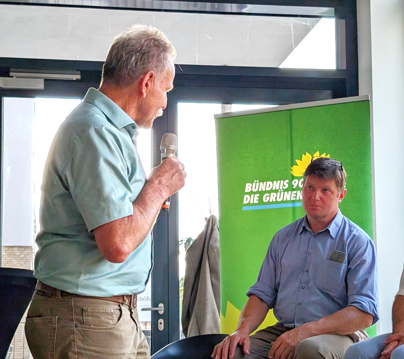 Tierwohl in der Landwirtschaft? Paul Knoblach (links), Mitglied des Landtags der Grünen und Sprecher für Tierschutz hatte zu einer Diskussionsrunde eingeladen. Hintergrund waren die Aufdeckungen von massiven Missständen in der Tierhaltung in der Region in den letzten Monaten (wir berichteten). Zu Beginn stellte ein Diskussionsteilnehmer, Landwirt aus dem Landkreis Rosenheim, eindrücklich die Situation der Landwirte dar, die mit 24/7 Arbeitszeit, mangelnder Unterstützung und immer mehr Bürokratie zu kämpfen hätten, wie er sagte.
