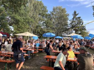 Musikalisch umrahmt wurde das Fest von der „Saukopfmusi“, die für beste Stimmung sorgte. Für die kleinen Gäste wurde eine Hüpfburg organisiert. Bei Barbetrieb und unter bunten Lichterketten konnten die Besucher bis in die frühen Morgenstunden zusammensitzen und ratschen.
