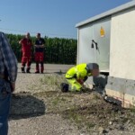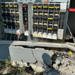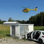 Ein Experte der Bayernwerke machte sich auf den Weg zur Unfallstelle, um den Schaden an der beschädigten Stromverteilerstation zu beurteilen und die Stromversorgung zu sichern.