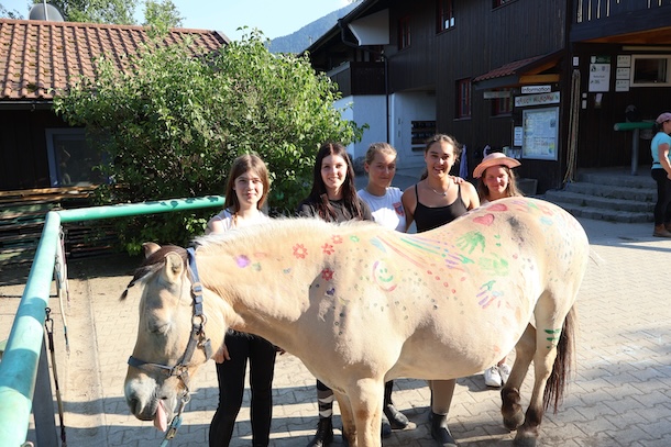 Doch auch außerhalb des Reitplatzes war für Abwechslung gesorgt: Beim Basteln, gemeinsamen Spielen und einer kreativen Ferienolympiade mit lustigen Aufgaben kam keine Langeweile auf. Besonders viel Freude bereitete das fantasievolle Bemalen der Ponys. Abends traf man sich zum gemeinsamen Lagerfeuer oder entspannte bei einem Kinoabend im Freien.