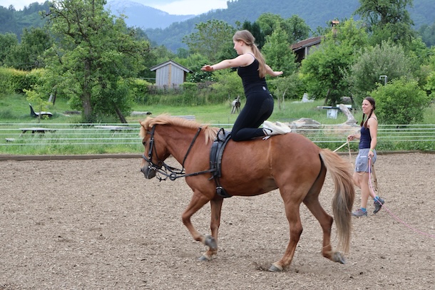 Gleich nach dem Frühstück begann der Tag für die Mädchen im Pferdestall. Die Ponys wurden von der Weide geholt, gestriegelt und für die Reitstunden vorbereitet. Jeden Vormittag erhielten die Teilnehmerinnen professionellen Reitunterricht, der nach Vorerfahrung in Anfänger- und Fortgeschrittenengruppen unterteilt war. So hatten alle Spaß und konnten vieles dazu lernen. Neben den Reitstunden sorgten Reiterspiele und Voltigieren für ein tolles Gruppenerlebnis. Höhepunkt der Woche war ein gemeinsamer Ausritt – ein unvergessliches Erlebnis.