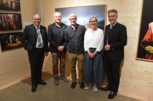 Bezirkstagspräsident Thomas Schwarzenberger begrüßte die anwesenden Gäste und Künstler. Er freute sich über die erste Ausstellung im neuen Gebäude. „Zeitlang“ sei ein in Bayern nicht mehr so geläufiges Wort. Es könne sowohl für Heimweh, Sehnsucht oder Langeweile stehen. Mit ihren Bildern zeichnen Sebastian Beck und Hans Kratzer ein eigenes Bild von Bayern und bieten scharfsinnige Einblicke in die Heimat. „Besonders berührt hat mich die Fotografie vom Seziertisch der KZ-Gedenkstätte in Flossenbürg“, so Schwarzenberger. Er wünschte der Ausstellung viel Erfolg und viele Besucher.