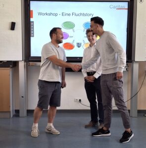 Eingebettet sind die Fragen in einen Workshop, der mehrere Schulstunden umfasst und bei dem die Schüler vieles über Fluchtursachen, Fluchtgründe und auch das Ankommen in einem fremden Land erfahren. Sehr persönlich wird der Workshop, wenn, wie bei der Veranstaltung in Edling, eine Person mit eigener Fluchterfahrung zu den Jugendlichen sprechen kann.